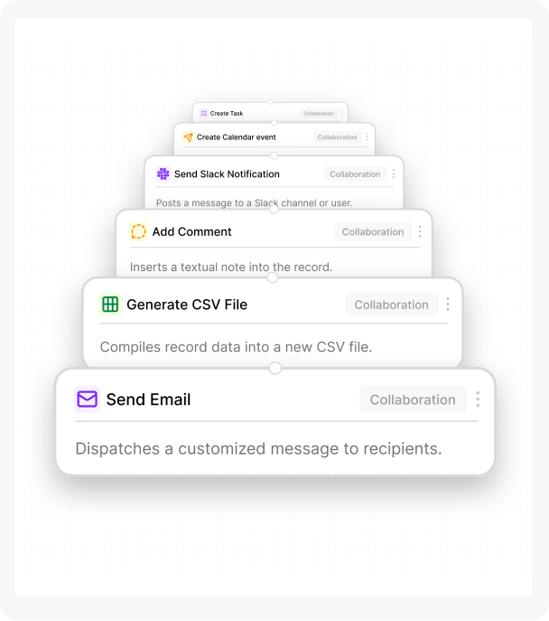 Share results, assign tasks, and align teams seamlessly within automated processes.